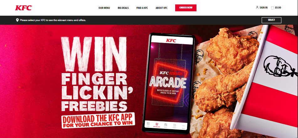 In the UK, customers who spend over £3, will be invited to participate in a game. This invitation will be sent via a push notification to those who have consented to receive it, or it will appear on the homepage of the KFC App.