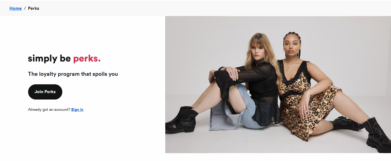 Online fashion retailer Simply Be specializes in plus-size women's clothing. Promoting body positivity, they celebrate women for everything that makes them unique. Their rewards program, known as “Simply Be Perks,” is designed to make shopping both engaging and enjoyable. They motivate members to share photos of themselves dressed in their preferred outfits or reveal the contents of their monthly gift box on social media in exchange for points.