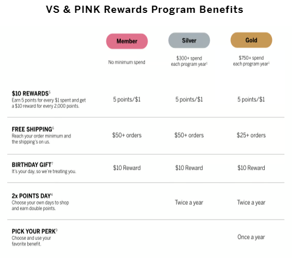 The program has 3 tiered levels: Member, Silver, Gold. Higher tiers give more exclusive benefits, and the tiers are determined by annual expenditure amounts. When a customer joins, they are immediately put into the Member tier. The Silver Tier requires an annual spend of $300, while the Gold tier requires $750. With each purchase, members earn points. If a customer uses the Victoria’s Secret Credit Card, they can earn points more quickly. For example, Gold level card holders earn 15 points for every dollar spent. What’s more, the app allows them to collect valuable customer data and increase website traffic.